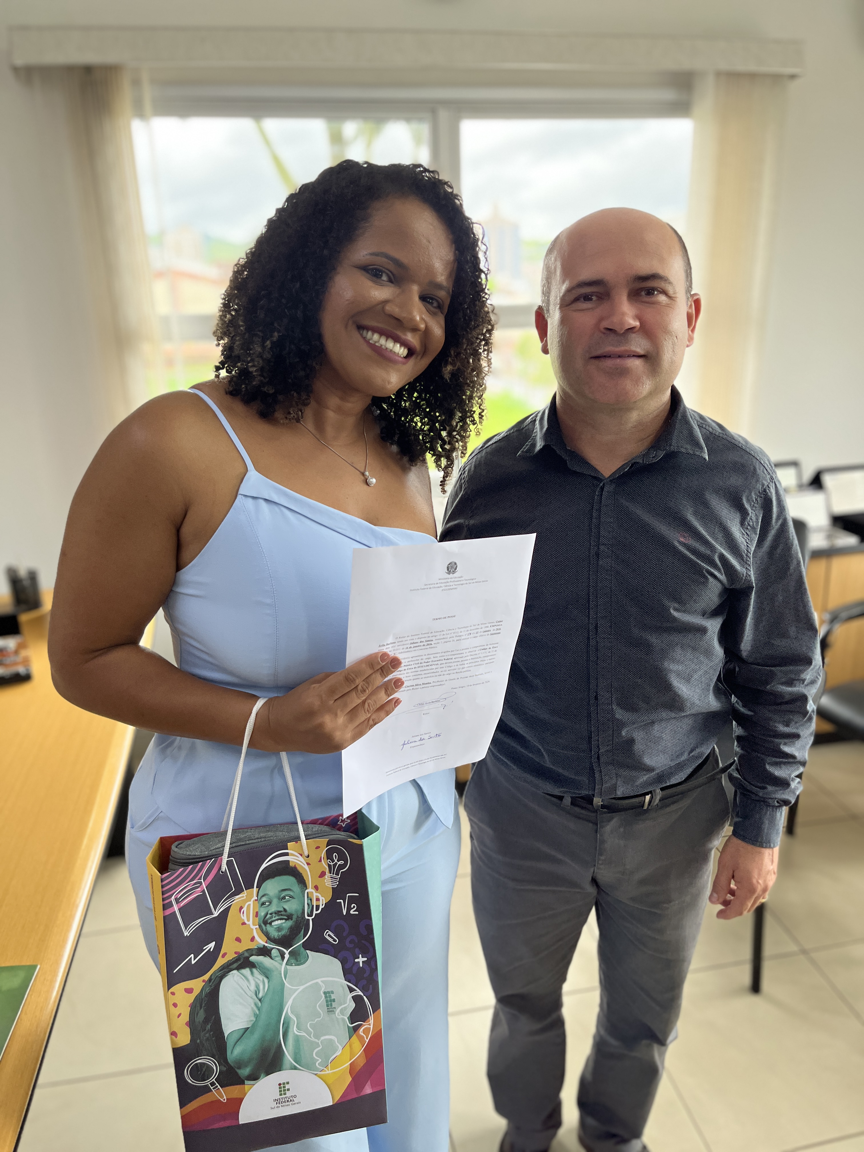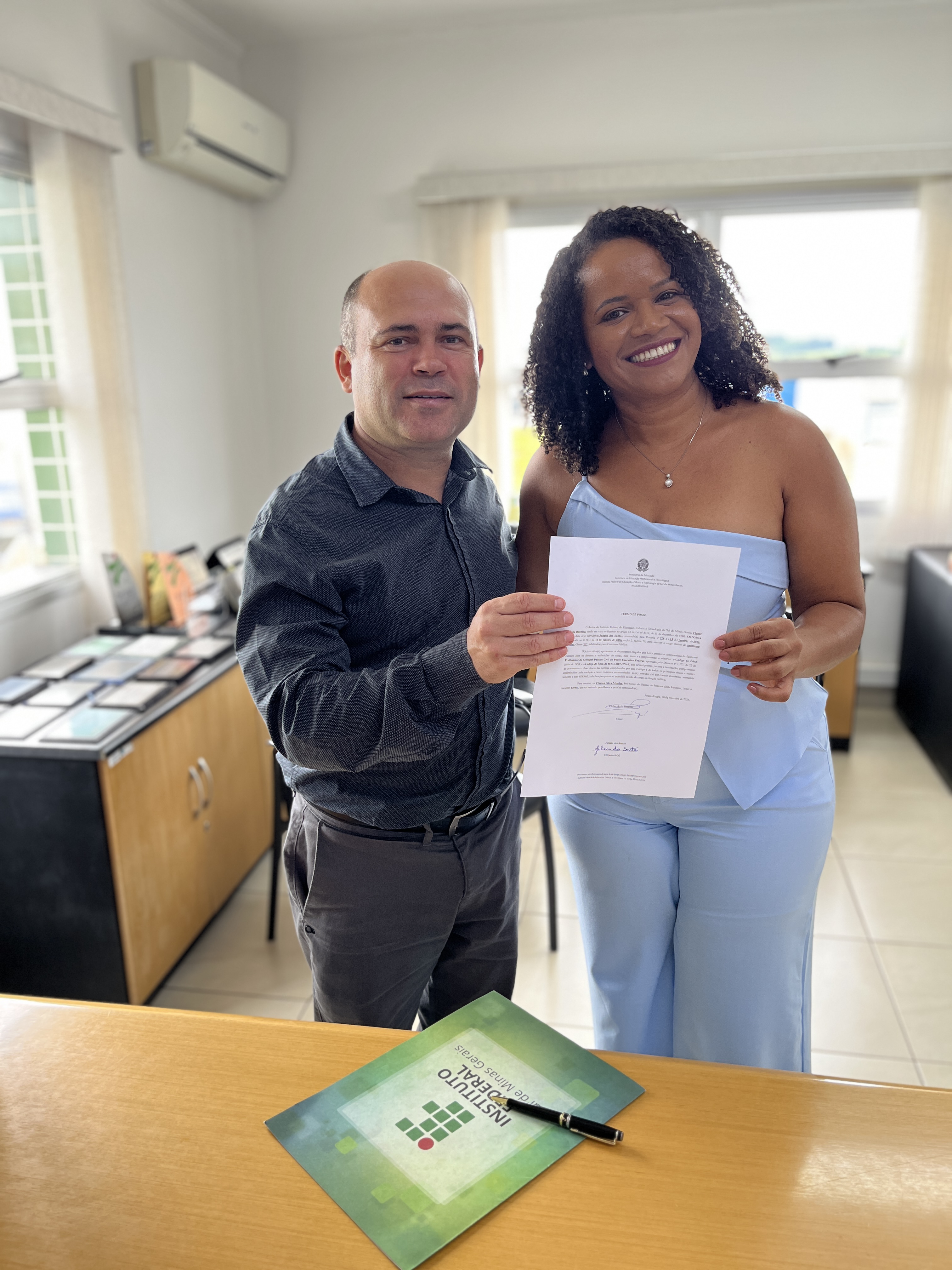 Na última terça-feira (10/02), o Instituto Federal do Sul de Minas (IFSULDEMINAS) recebeu a presença de dois novos servidores, que foram empossadas no gabinete da Reitoria. Participaram da posse o reitor, Cleber Ávila Barbosa, integrantes da gestão da reitoria e dos campi, e familiares dos ingressantes.