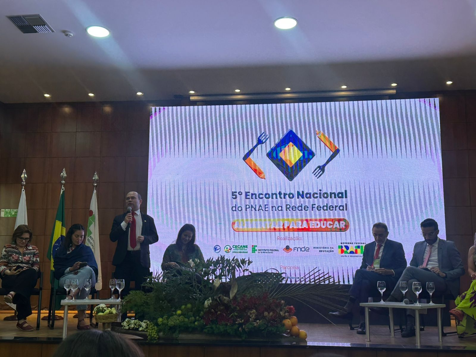 A abertura oficial contou com apresentação cultural do grupo Catira Mão Divina, formado por estudantes do IFB Campus Planaltina e, em seguida, compuseram a mesa o reitor do IFSULDEMINAS, Cleber Ávila Barbosa; a coordenadora do Centro Colaborador em Alimentação Escolar (Cecane) do IFSULDEMINAS, Aloísia Rodrigues Hirata; o reitor do Instituto Federal de Alagoas (Ifal), representando o Conselho Nacional das Instituições da Rede Federal de Educação Profissional, Científica e Tecnológica (Conif), Carlos Guedes; o diretor de Ações Educacionais, do Fundo Nacional de Desenvolvimento da Educação (FNDE), Anderson Wilson Sampaio; a coordenadora-geral do Departamento de Aquisição e Distribuição de Alimentos Saudáveis do Ministério do Desenvolvimento e Assistência Social, Família e Combate à fome, Elisângela Sanches Januário, e a diretora do Departamento de Apoio à Aquisição e à Comercialização da Agricultura Familiar do Ministério do Desenvolvimento Agrário e Agricultura Familiar, Islandia Bezerra Costa.Também estiveram presentes, gestores e servidores do IFSULDEMINAS.