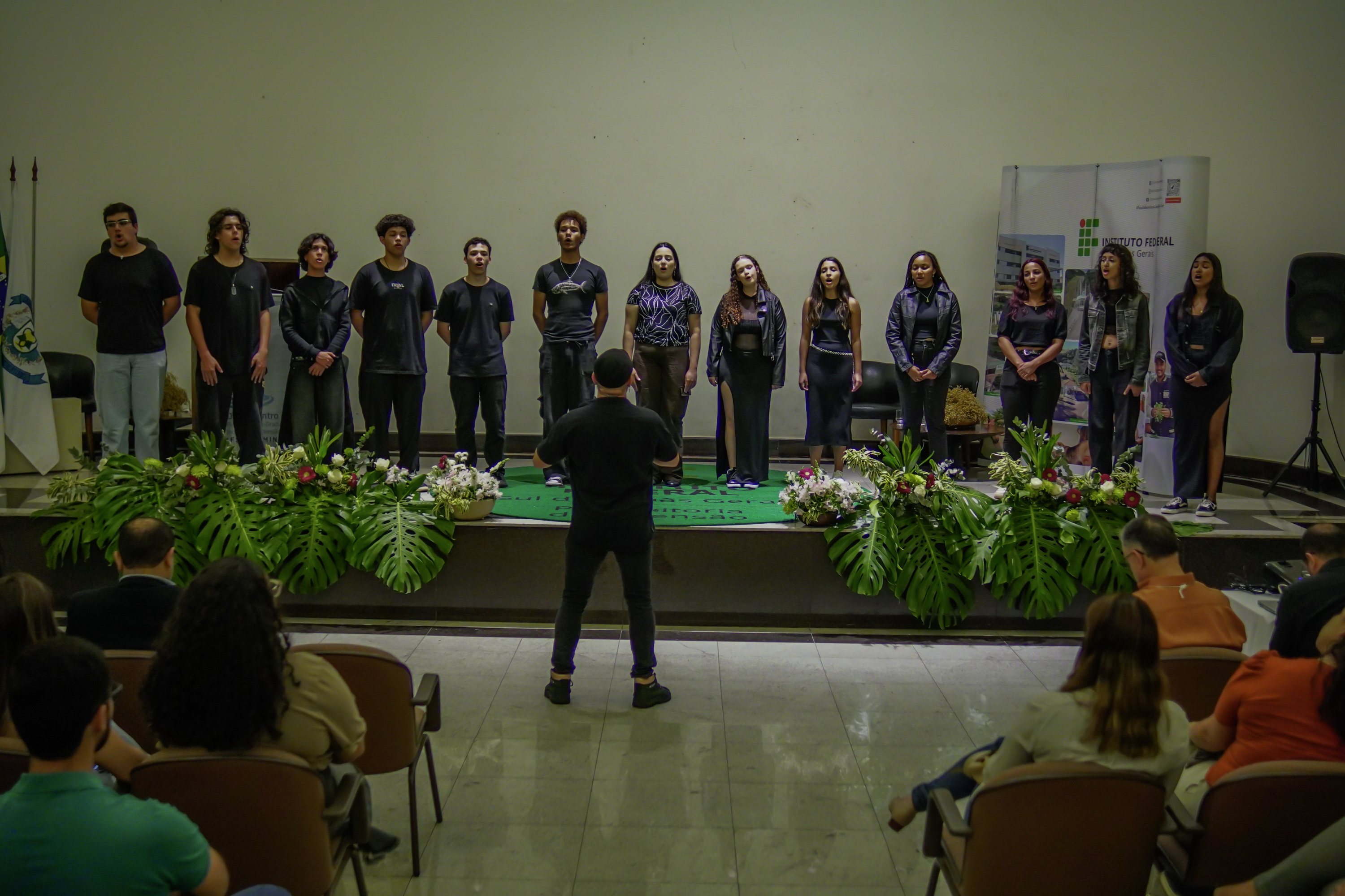 O Coral Voices IFCDM emocionou o auditório lotado. O Coral, regido pelo colaborador do campus, Rafael Janke Bosque, levou 13 dos seus 30 membros. Eles apresentaram várias músicas internacionais e brasileiras.