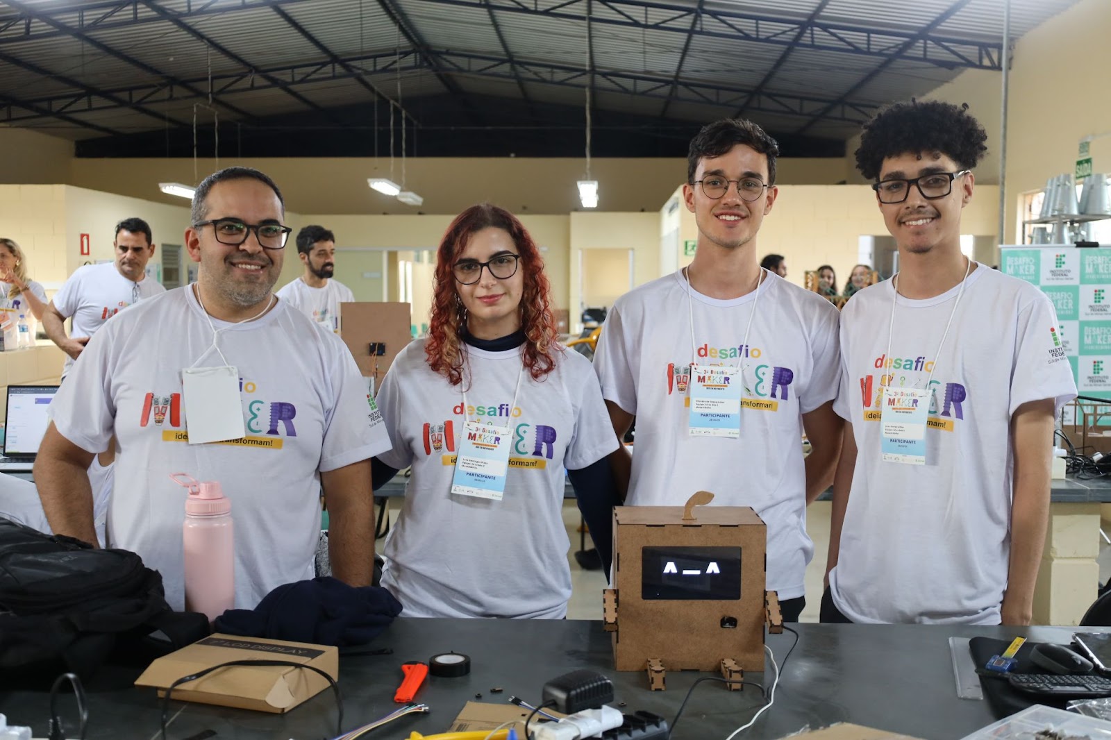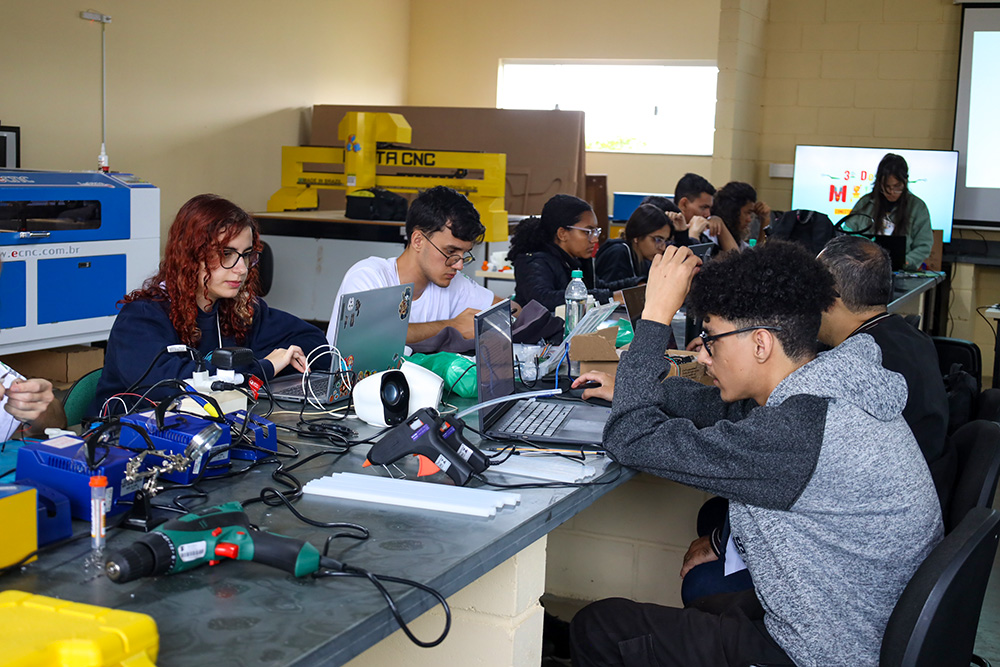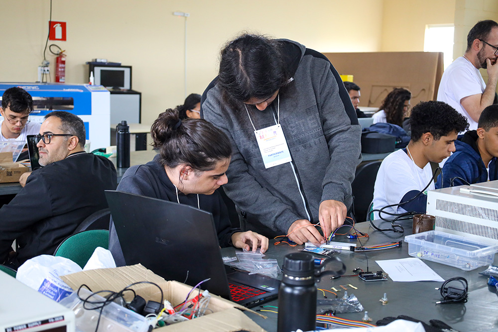 Durante seis horas ininterruptas, totalmente dedicadas à criatividade, inovação e trabalho colaborativo, os participantes mergulharam na proposta e literalmente colocaram a mão na massa para criar protótipos e soluções, utilizando equipamentos e materiais disponibilizados pelo IFSULDEMINAS, como impressoras 3D, CNC de corte e gravação a laser, ferramentas elétricas (parafusadeira, micro retífica, cola quente), ferramentas manuais (chaves diversas, martelo, alicates, serra), Equipamentos de Proteção Individual (EPI), estação de solda, multímetros e fontes.